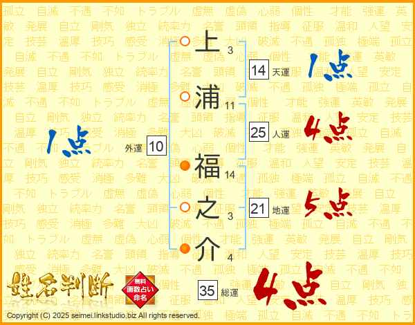 上(3画)浦(11画) 福(14画)之(3画)介(4画)