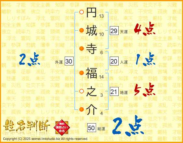 円(13画)城(10画)寺(6画) 福(14画)之(3画)介(4画)