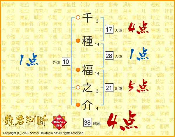 千(3画)種(14画) 福(14画)之(3画)介(4画)