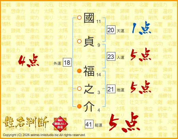 國(11画)貞(9画) 福(14画)之(3画)介(4画)