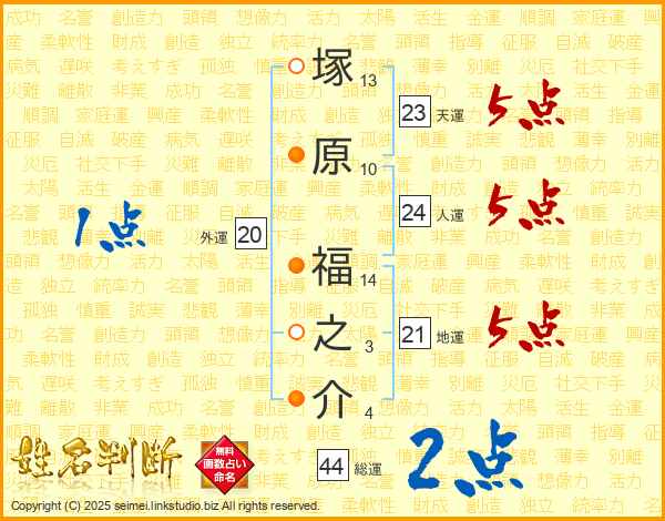 塚(13画)原(10画) 福(14画)之(3画)介(4画)