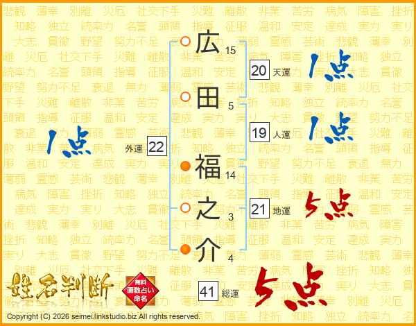 広田福之介さんの総運は41画の5点!