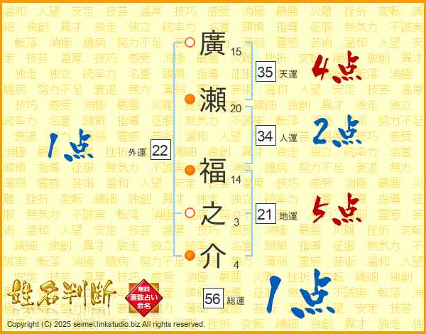 廣瀬福之介さんの総運は56画の1点!
