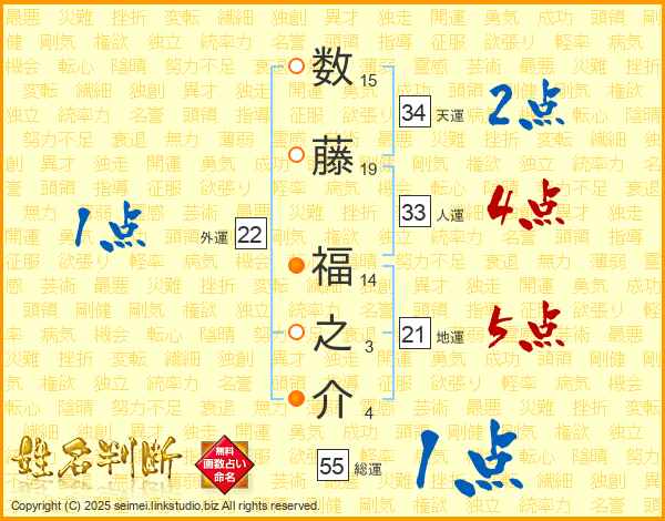 数(15画)藤(19画) 福(14画)之(3画)介(4画)