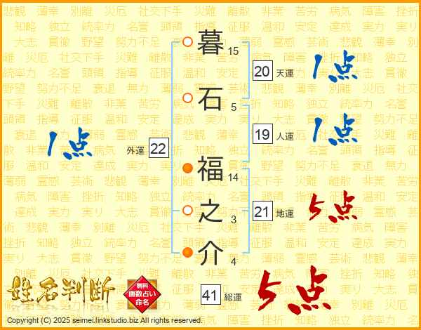 暮(15画)石(5画) 福(14画)之(3画)介(4画)