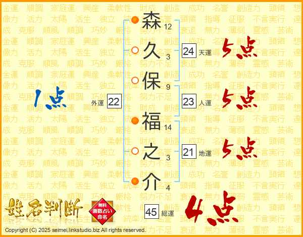 森久保福之介さんの総運は45画の4点!