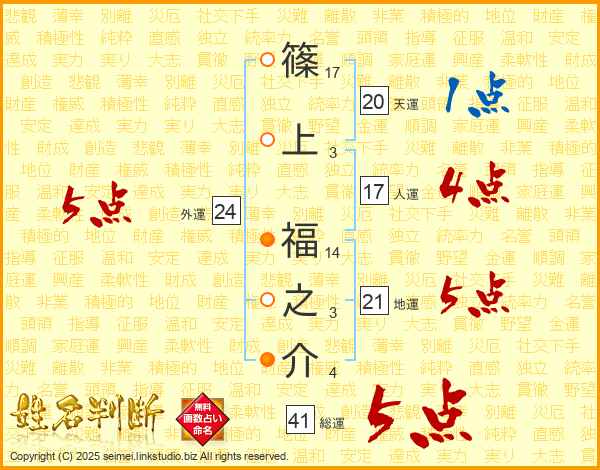 篠上福之介さんの総運は41画の5点!