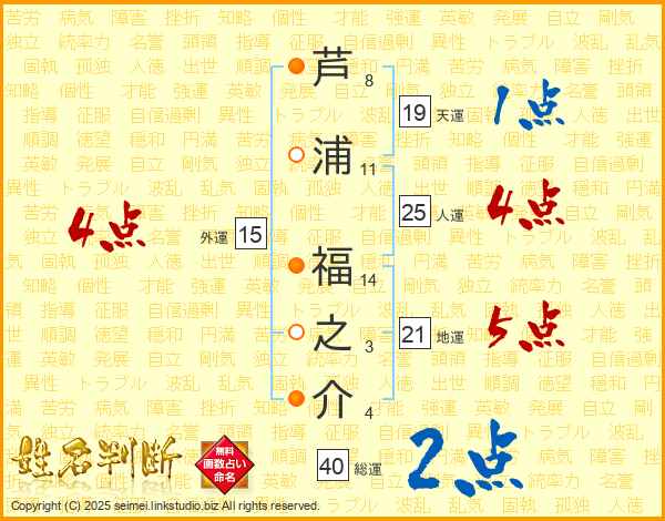 芦(8画)浦(11画) 福(14画)之(3画)介(4画)