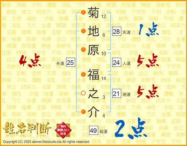 菊(12画)地(6画)原(10画) 福(14画)之(3画)介(4画)