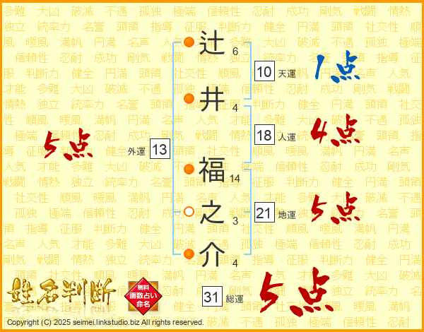 辻(6画)井(4画) 福(14画)之(3画)介(4画)