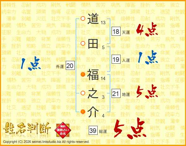 道田福之介さんの総運は39画の5点!