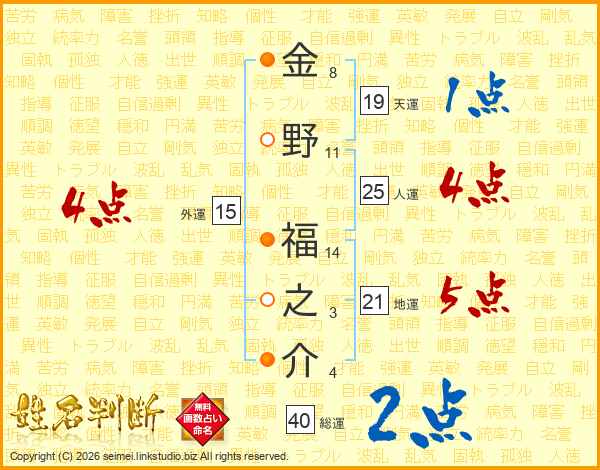金野福之介さんの人運は25画の4点!
