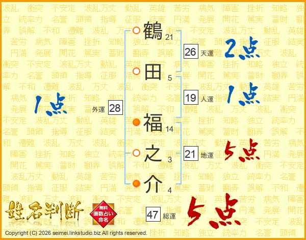 鶴田福之介さんの総運は47画の5点!