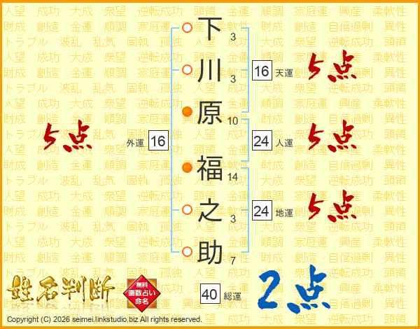 下川原福之助さんの外運は16画の5点!