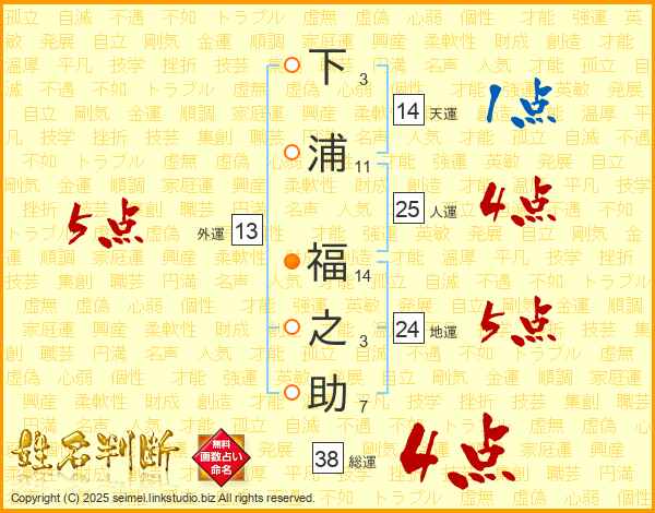 下(3画)浦(11画) 福(14画)之(3画)助(7画)