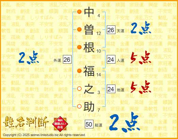 中(4画)曽(12画)根(10画) 福(14画)之(3画)助(7画)