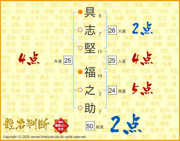 具(8画)志(7画)堅(11画) 福(14画)之(3画)助(7画)