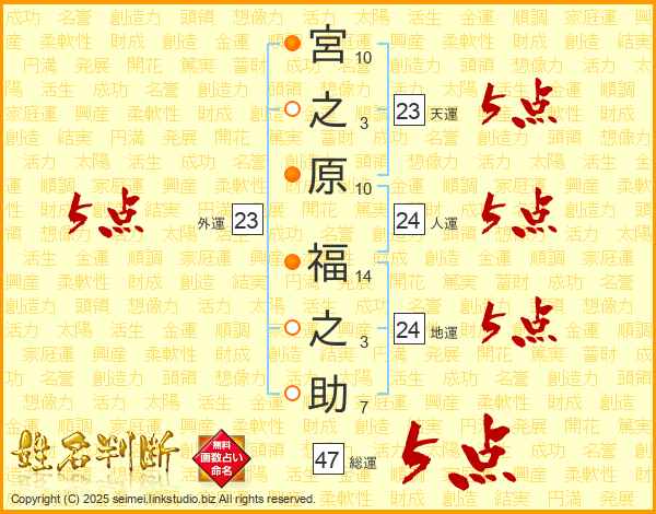 宮(10画)之(3画)原(10画) 福(14画)之(3画)助(7画)