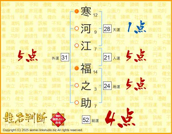 寒(12画)河(9画)江(7画) 福(14画)之(3画)助(7画)