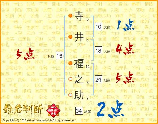 寺(6画)井(4画) 福(14画)之(3画)助(7画)