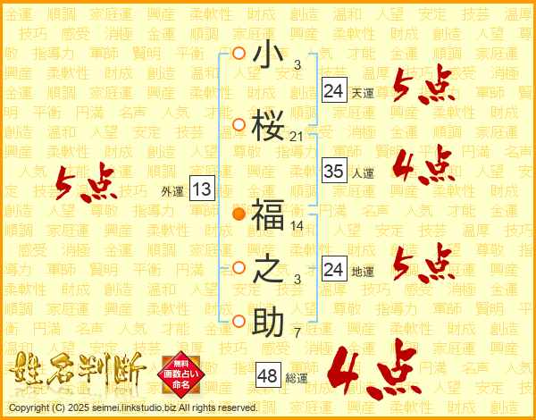 小桜福之助さんの総運は48画の4点!