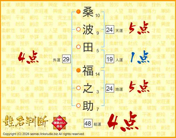 桑波田福之助さんの総運は48画の4点!