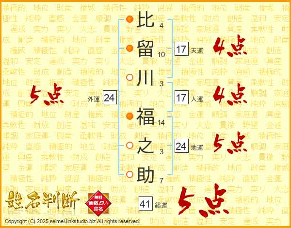比(4画)留(10画)川(3画) 福(14画)之(3画)助(7画)