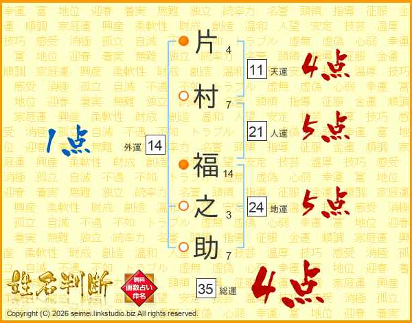 片村福之助さんの総運は35画の4点!