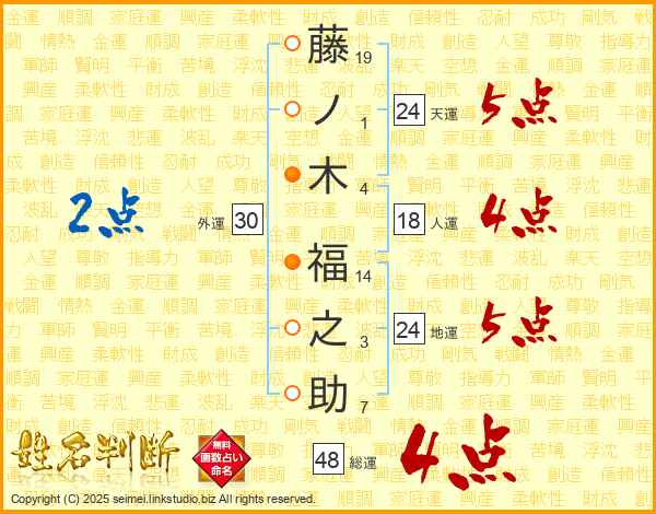 藤(19画)ノ(1画)木(4画) 福(14画)之(3画)助(7画)