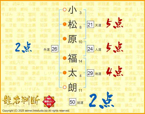 小(3画)松(8画)原(10画) 福(14画)太(4画)朗(11画)