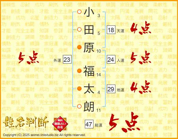 小田原福太朗さんの地運は29画の4点!