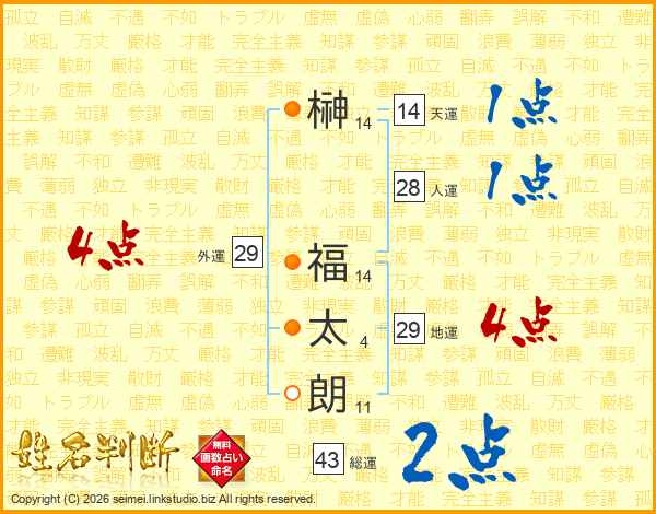榊福太朗さんの天運は14画の1点!