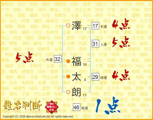 澤福太朗さんの外運は32画の5点!