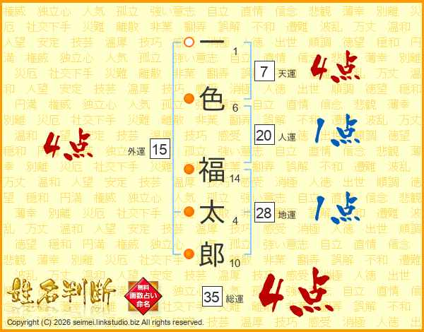 一(1画)色(6画) 福(14画)太(4画)郎(10画)