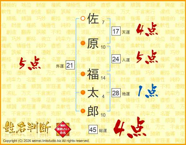 佐原福太郎さんの総運は45画の4点!