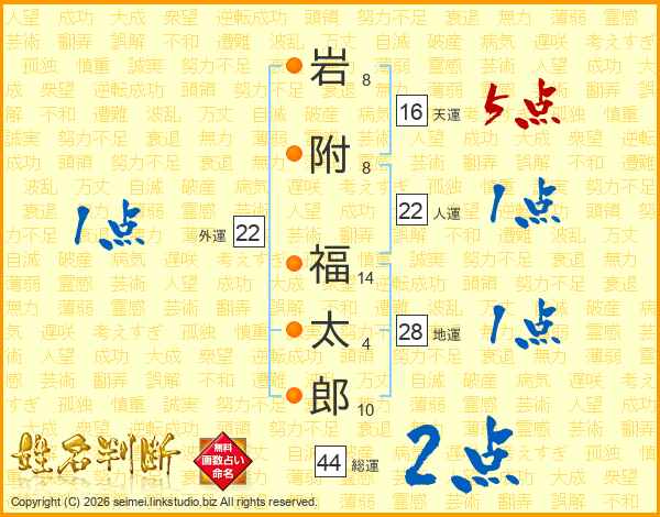 岩(8画)附(8画) 福(14画)太(4画)郎(10画)