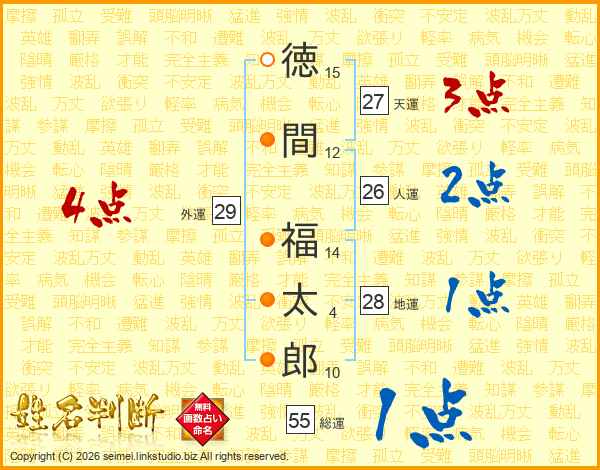 徳(15画)間(12画) 福(14画)太(4画)郎(10画)