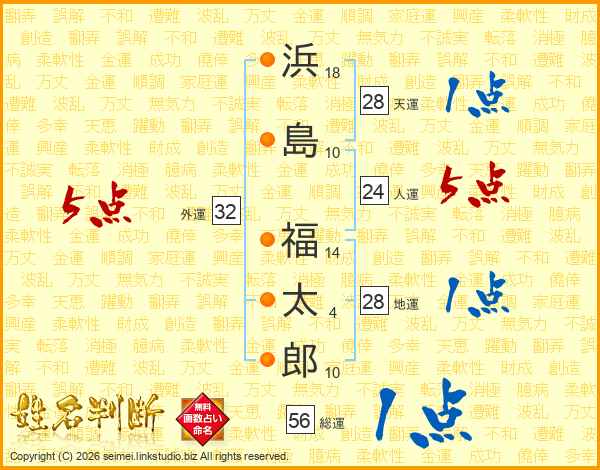浜島福太郎さんの総運は56画の1点!