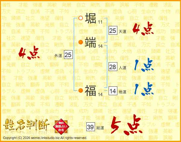 堀端福さんの総運は39画の5点!