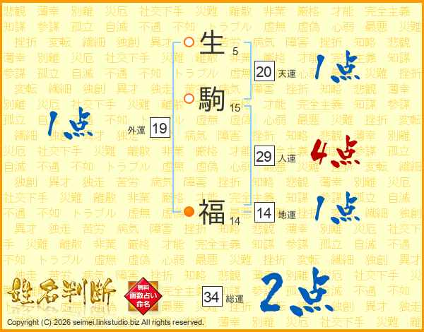 生駒福さんの総運は34画の2点!