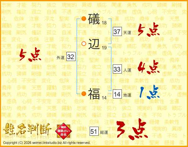 礒辺福さんの総運は51画の3点!