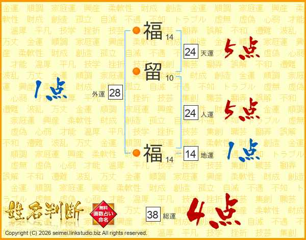 福留福さんの総運は38画の4点