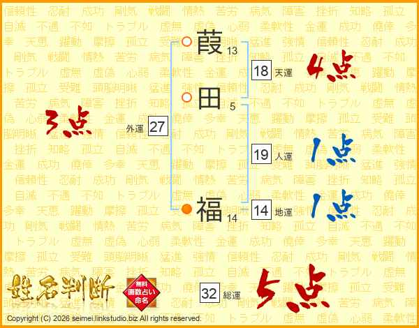 葭田福さんの総運は32画の5点!
