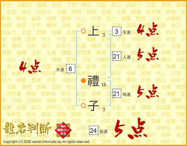 上禮子さんの総運は24画の5点!