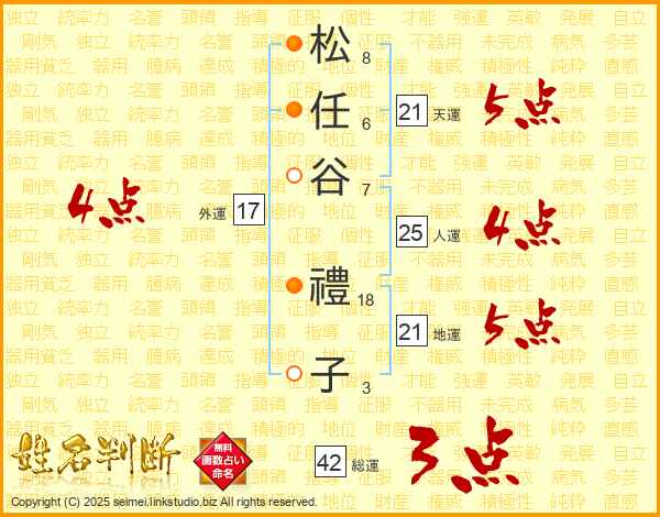 松(8画)任(6画)谷(7画) 禮(18画)子(3画)