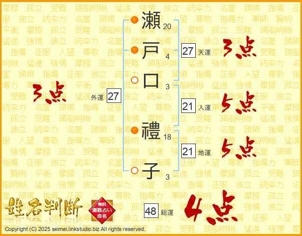 瀬戸口禮子さんの天運は27画の3点!
