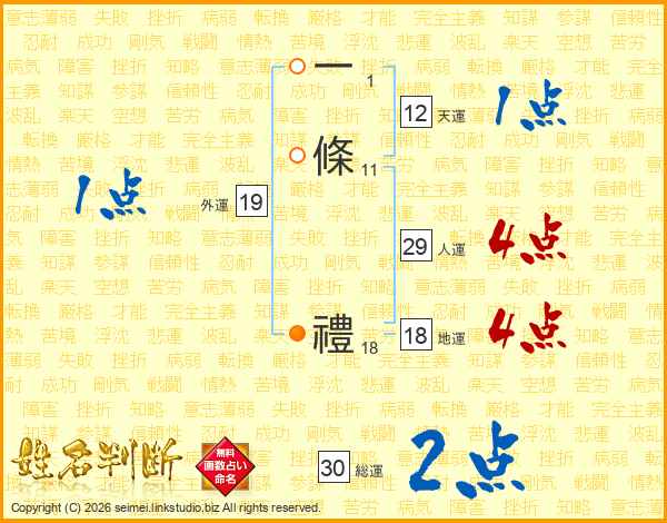 一條禮さんの総運は30画の2点!