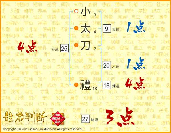 小太刀禮さんの総運は27画の3点!