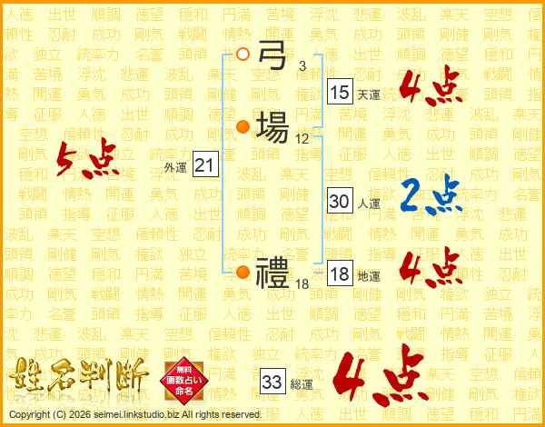 弓場禮さんの総運は33画の4点!