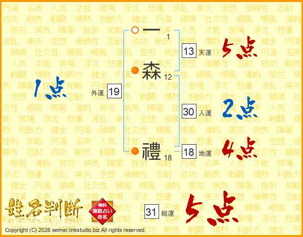 一森禮さんの総運は31画の5点!